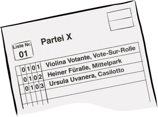 Bei Wahlen gibt es pro Partei eine vorgefertigte Liste. Ausserdem liegt dem Wahlmaterial eine leere Liste bei, die man selbst ausfüllen kann. Wenn man mit einer Liste fast einverstanden ist und nur kleine Änderungen daran vornehmen möchte, kann man Stimmen kumulieren oder panaschieren. Dazu kannst du handschriftlich Personen auf der Liste durchstreichen und ersetzen.